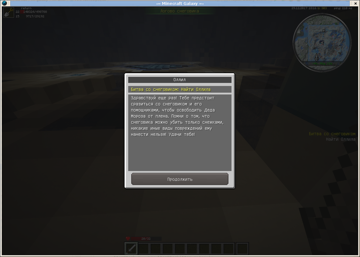 После того, как логово снеговика найдено, необходимо будет поговорить с Оллилом и вызвать снеговика на бой: