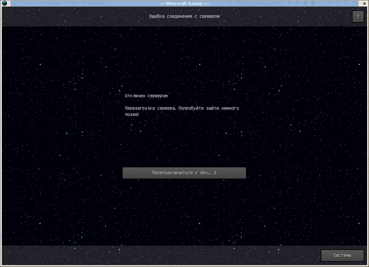 Поскольку данжи отсутствуют в меню выбора планет, то был добавлен автоматический реконнект к серверу после обрыва связи или в случае любой иной ошибки: