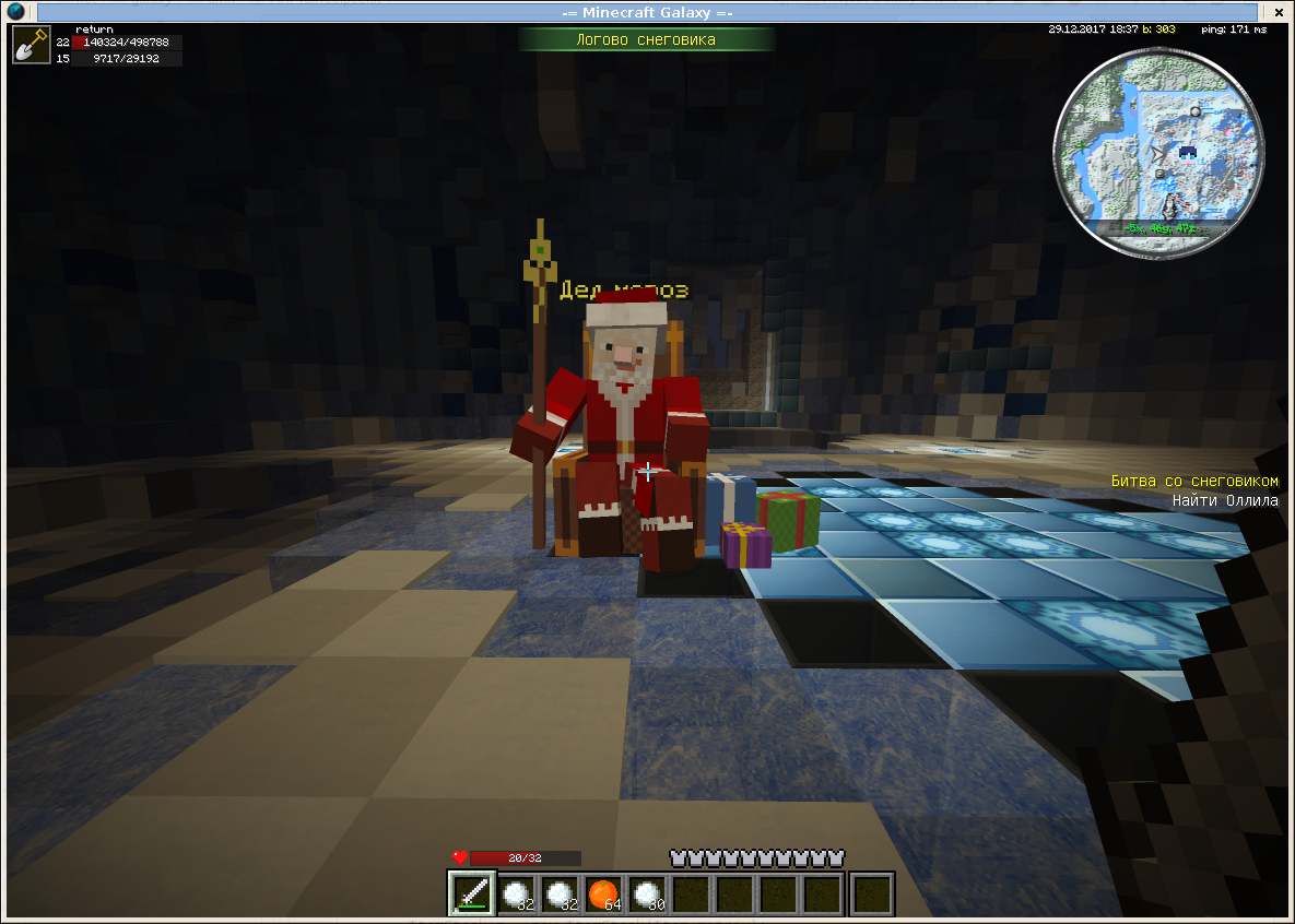 В самом начале битвы снеговик будет изо всех сил стараться победить, но чем ближе к концу, тем слабее он будет становиться и все больше снежков пропускать, увеличивая урон, наносимый ими по себе. Следует так же помнить о том, что снеговик ни в коем случае не должен стоять на месте, т.к. у него сразу же сильно увеличится регенерация здоровья и битву придется начинать сначала. Как только же снеговик будет повержен, появится Дед Мороз: