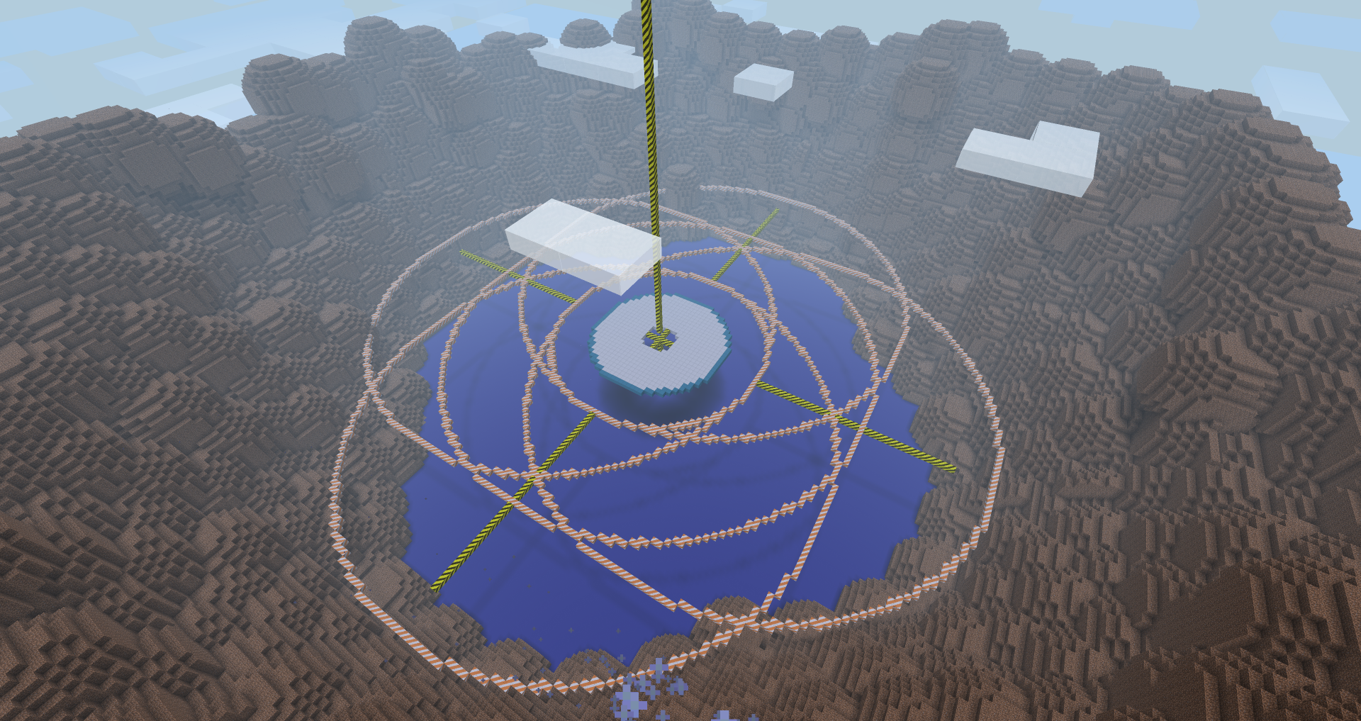 Стройка: на этом этапе все участники заходят в качестве обычных игроков (как в любом ином режиме), при этом им дается посох и ранец для полета, в меню F9 по умолчанию открывается набор блоков для стройки (Shift+F9 открывает стандартное меню настроек). Соответственно только в это время все изменения, сделанные на карте, сохраняются на диск, в то время как во всех остальных этапах карта не будет сохранена даже если кто-то каким-то образом что-то на ней поменяет. На этом этапе каждый участник должен после окончания стройки опубликовать свой сектор, выбрав соответствующий пункт в меню настроек. Все остальные игроки появляются в качестве спектатров в центре карты.
