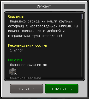 Далее при переходе на страницу отправки в данжи, Сержант выведет все те данжи, которые доступны игроку. Часть из них появится в списке не сразу, а только после прохождения определенных заданий или выполнения иных условий. Чтобы отправиться в выбранный данж, у игрока должно быть доступно требуемое количество топлива, в противном случае посетить он его не сможет. В этом же списке указывается и то, сколько максимум опыта игрок получит за прохождение.
