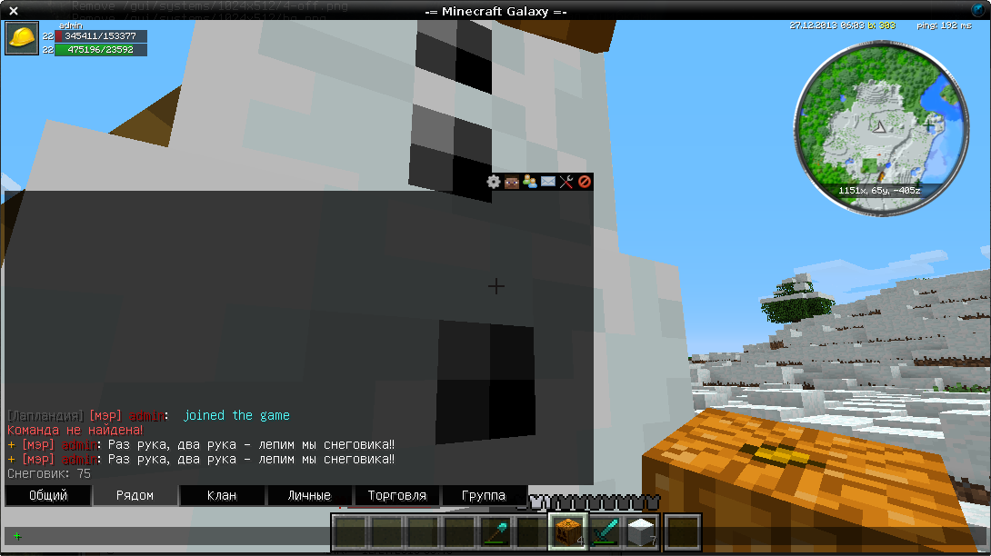 почему не добываются снежки и дед мороз только на сервере Clans????