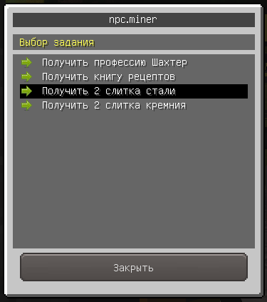 - квест на получение книги профессиональных рецептов для выбранной профессии