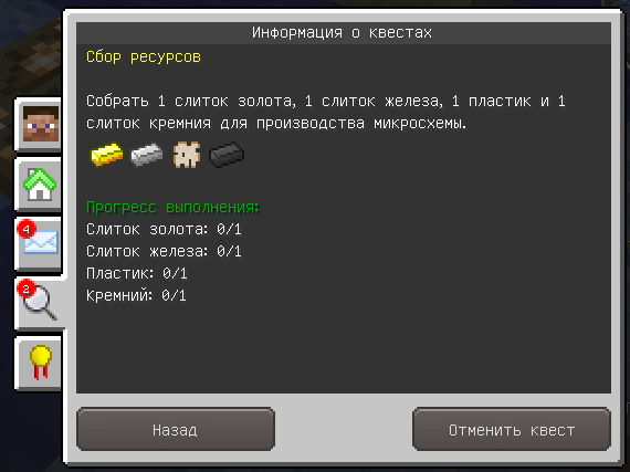 - добавлена настройка клавиши, по нажатию которой открывается вкладка с квестами игрока