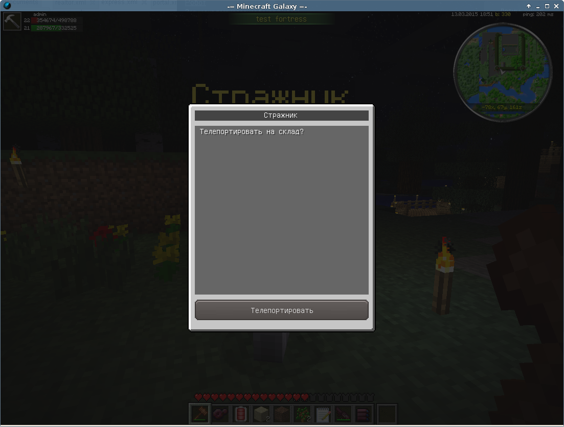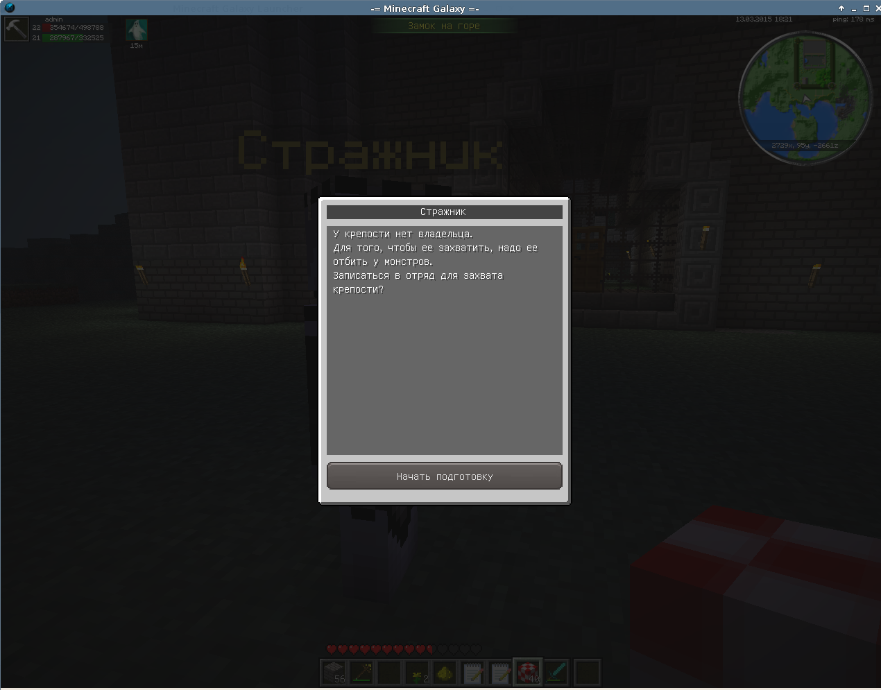 через которое можно: открывать или закрывать главные ворота крепости, телепортировать всех гостей(не членов клана - владельца крепости) на спавн, получать товары (пока только телепорты внутрь крепости), собирать налог (маржу) на планетах с арендой зон.