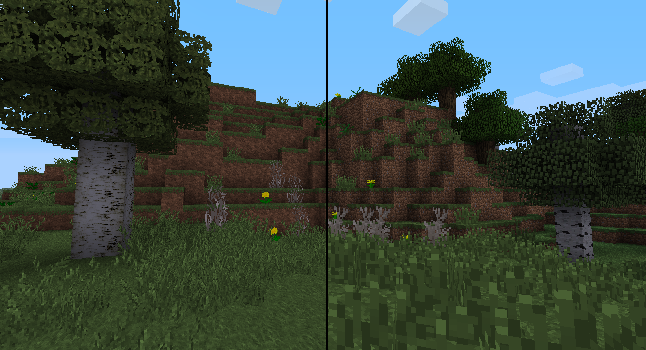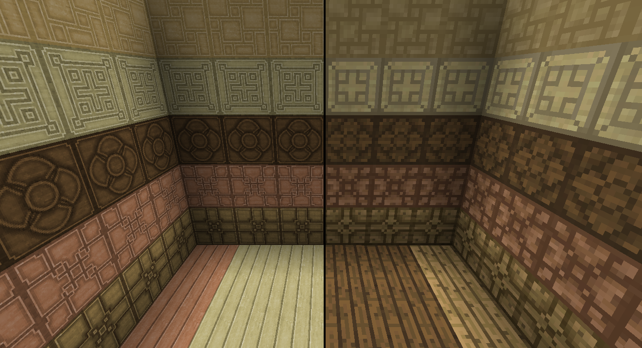 Ниже представлены примеры сравнения стандартного текстур пака и нового HD пака: