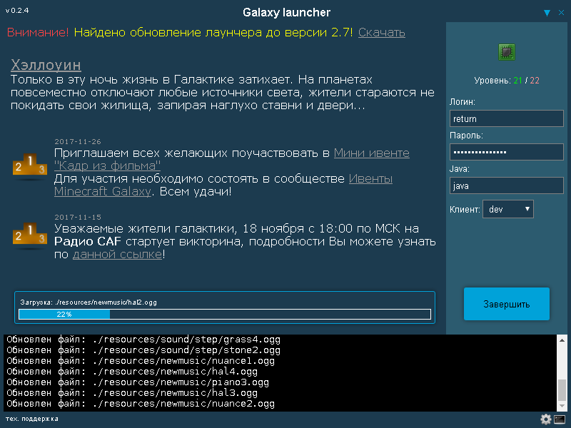 Так же мы ведем работу над новым лаунчером, который упростит подключение к нашим серверам новых игроков и сделает эту процедуру еще быстрее. В этом лаунчере так же будет учтено большинство замечаний от игроков. В настоящий момент лаунчер находится в стадии разработки и не предназначен для использования игроками. Новый лаунчер в отличии от текущего прекрасно работает на всех последних версиях MacOS и не требует установки каких-либо дополнительных приложений. Кроме того он автоматически обновляется без необходимости скачивания вручную с сайта после каждого выхода обновления.