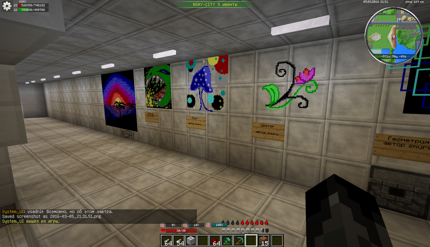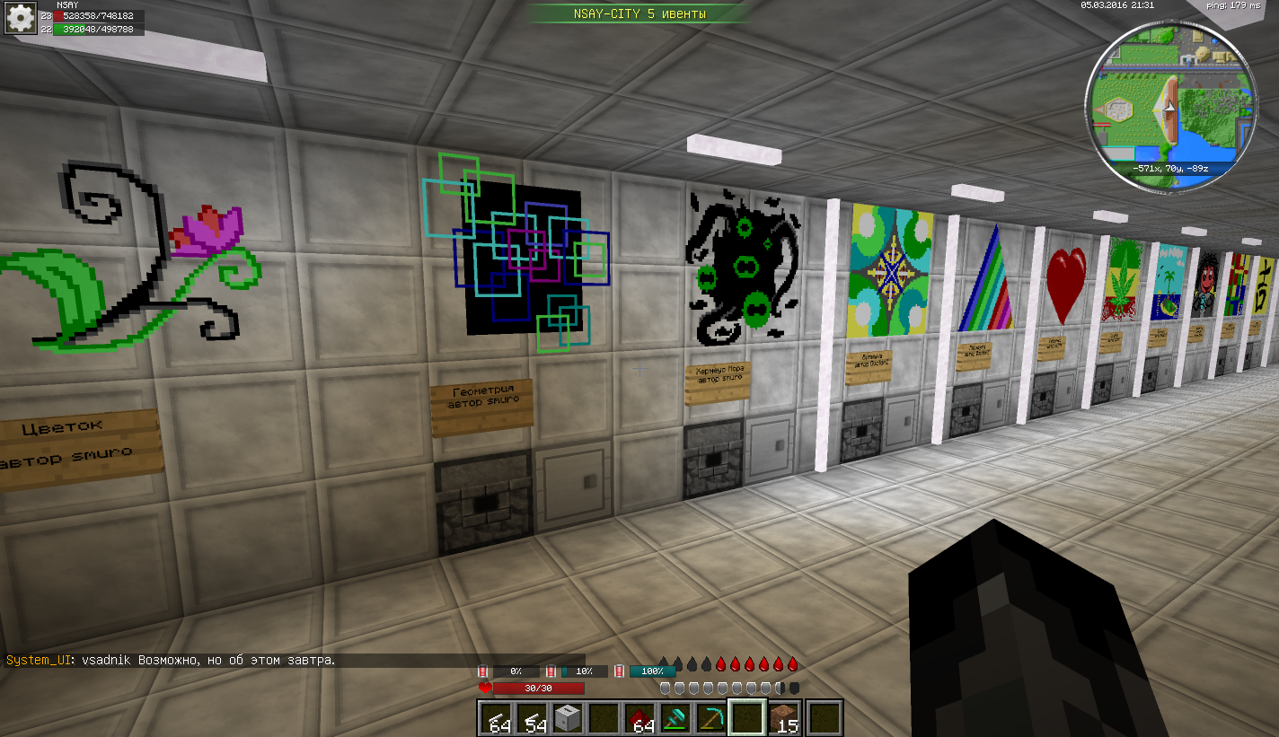 Вы можете вывесить картины у нас в галереи(можно с продажей, а можно просто на просмотр для всех). Галерея находится тут [ -567,-76 ] Доски для рисования будут предоставлены для ваших картин. |