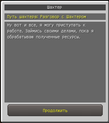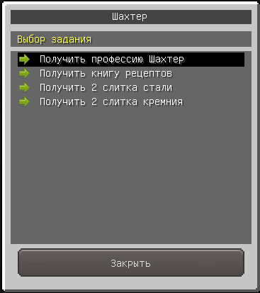 Для получения задания нужно подойди к NPC Шахтёру, нажать на него ПКМ и выполнить действия как на картинках