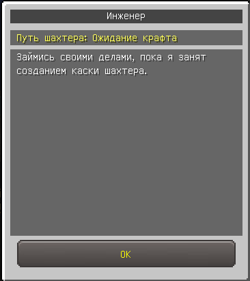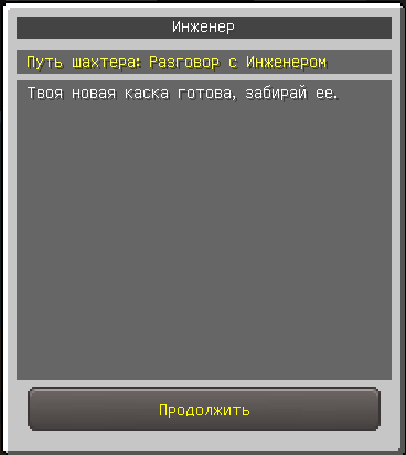 По истечению времени вернитесь к NPC Инженеру, он даст вам каску шахтера