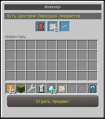 NPC Шахтёр попросит вас принести алмаз, 2 стали, гаечный ключ