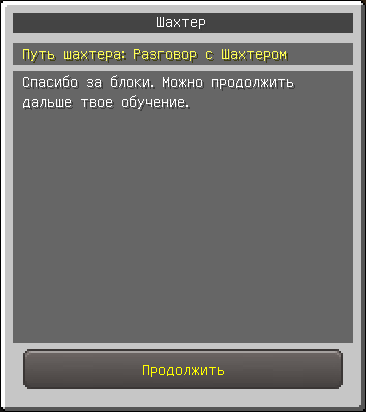 Вернитесь к NPC Шахтёру, для продолжения обучения