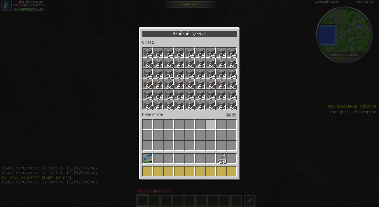 heaDyS писал(а): Обьясню, дело в том что хранилка только в процесе стройки. а ресурсы были в сундуках на время.. ну вот и какието ресы просто ушли, какието прийдут.. Какая разницаА почему им нельзя подождать в месте, где они были до этого? |