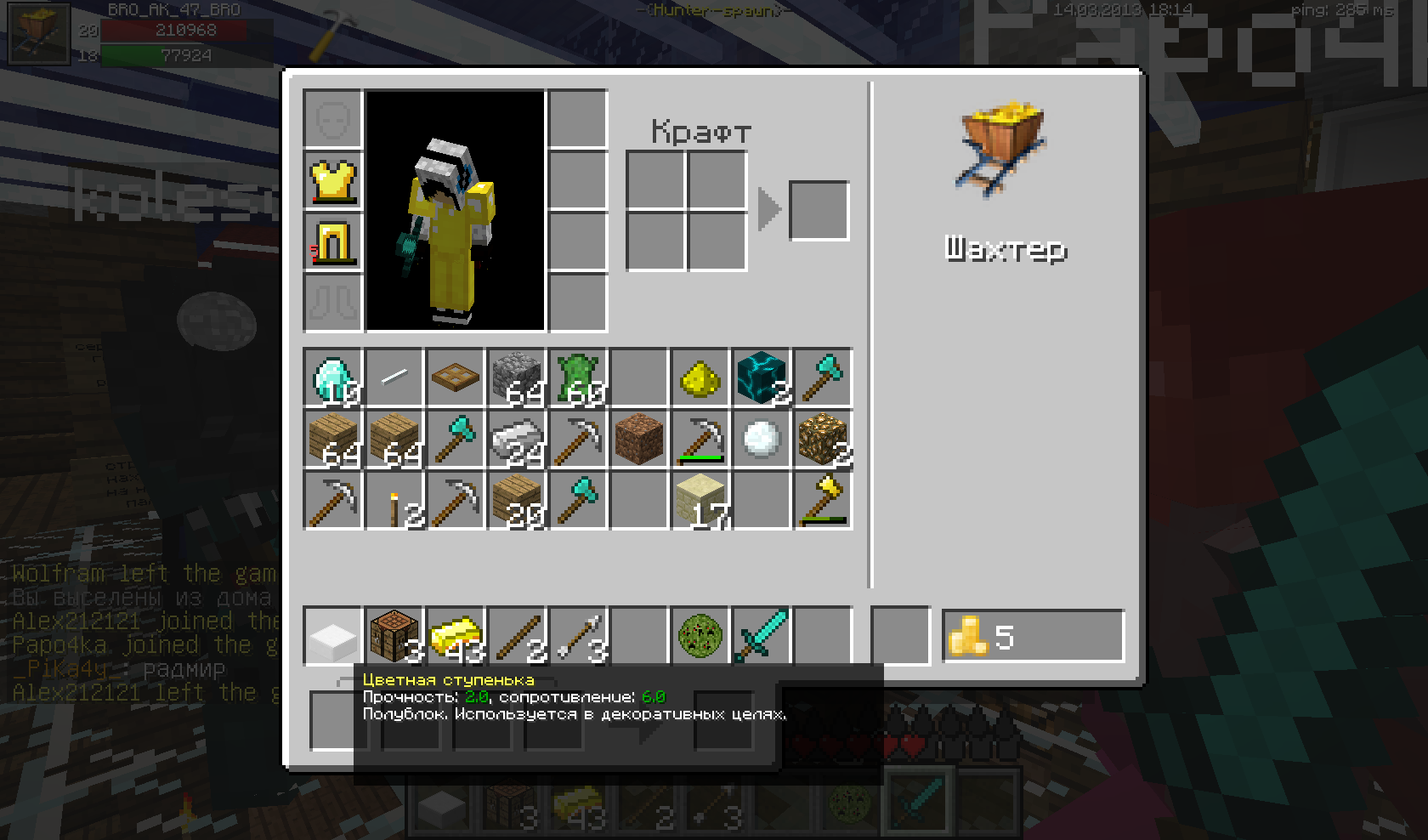 это скрин не с буилда у них с максом когда еще я у них жил было 2-2-ых ящика алм кубов.там у них раньше какаето прога была.и плюс откуда на буилде золотая сумка рация броня шахтера.и пишут там не зеленым.