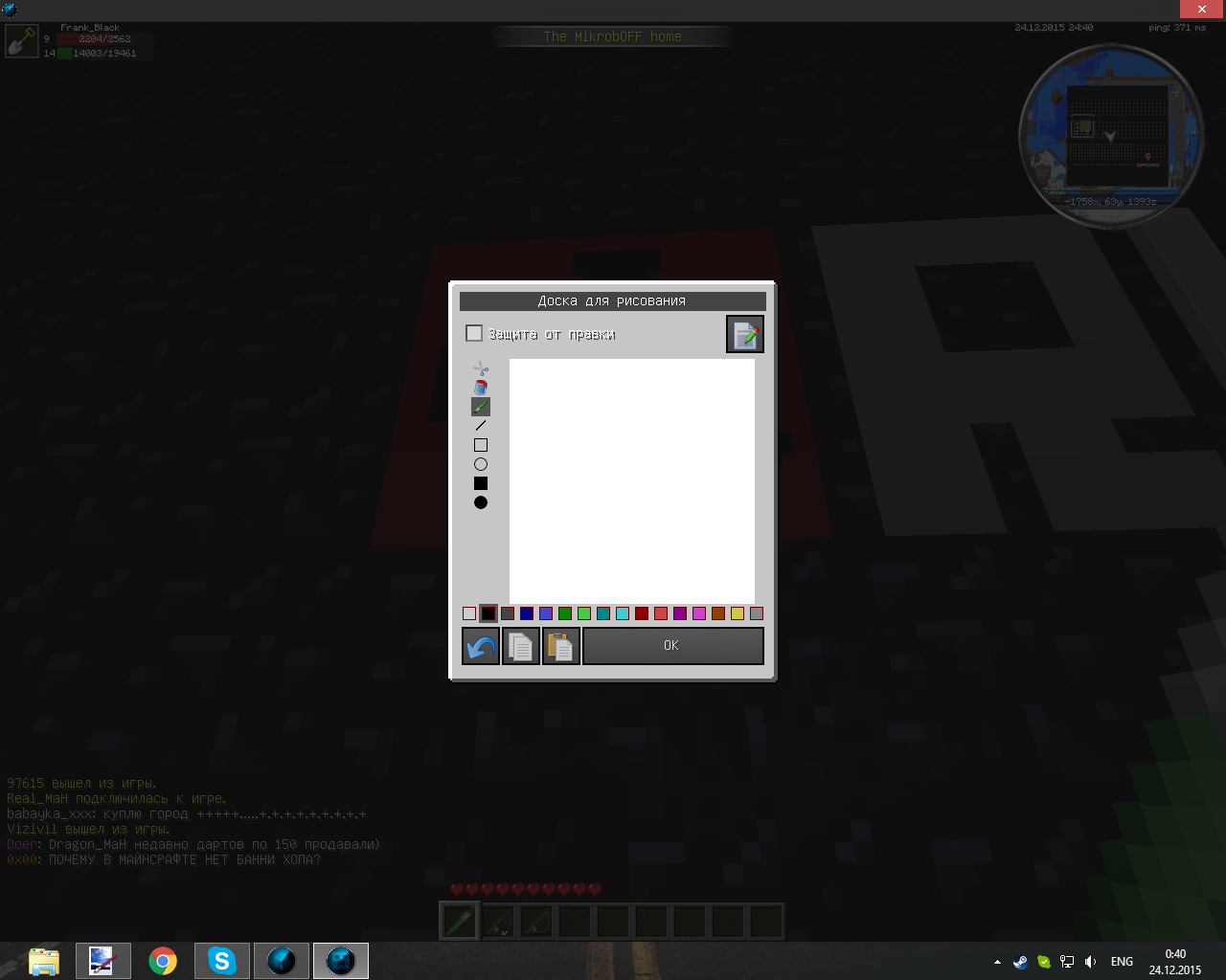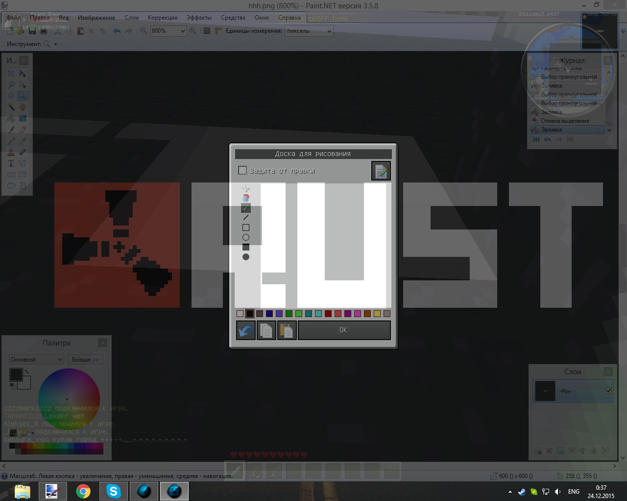 Доска для рисованияНужна для рисования пользовательских картин. Рисование осуществляется с помощью кисти. имеет рабочую область 64х64 пикс. Картинка которую я буду рисовать размером 280х64 пикс, по этому мне понадобилось 5 Доскок для рисования.