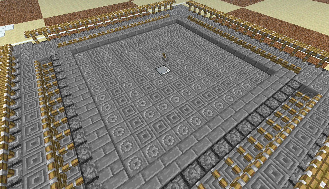 [quote]13.Редстоун на внутреннем кольце накрываем полублоками, а дырень в центре блоками. Таким образом должна образоваться ровная площадка(почти ровная) в центре