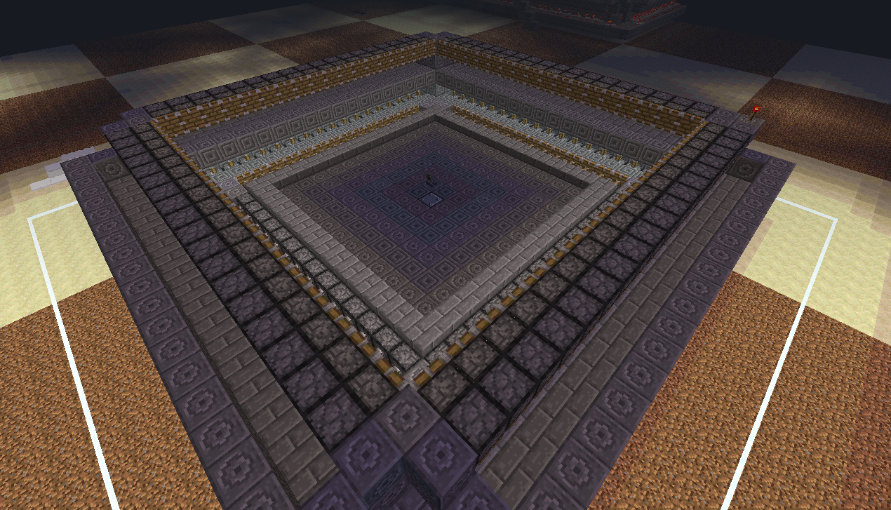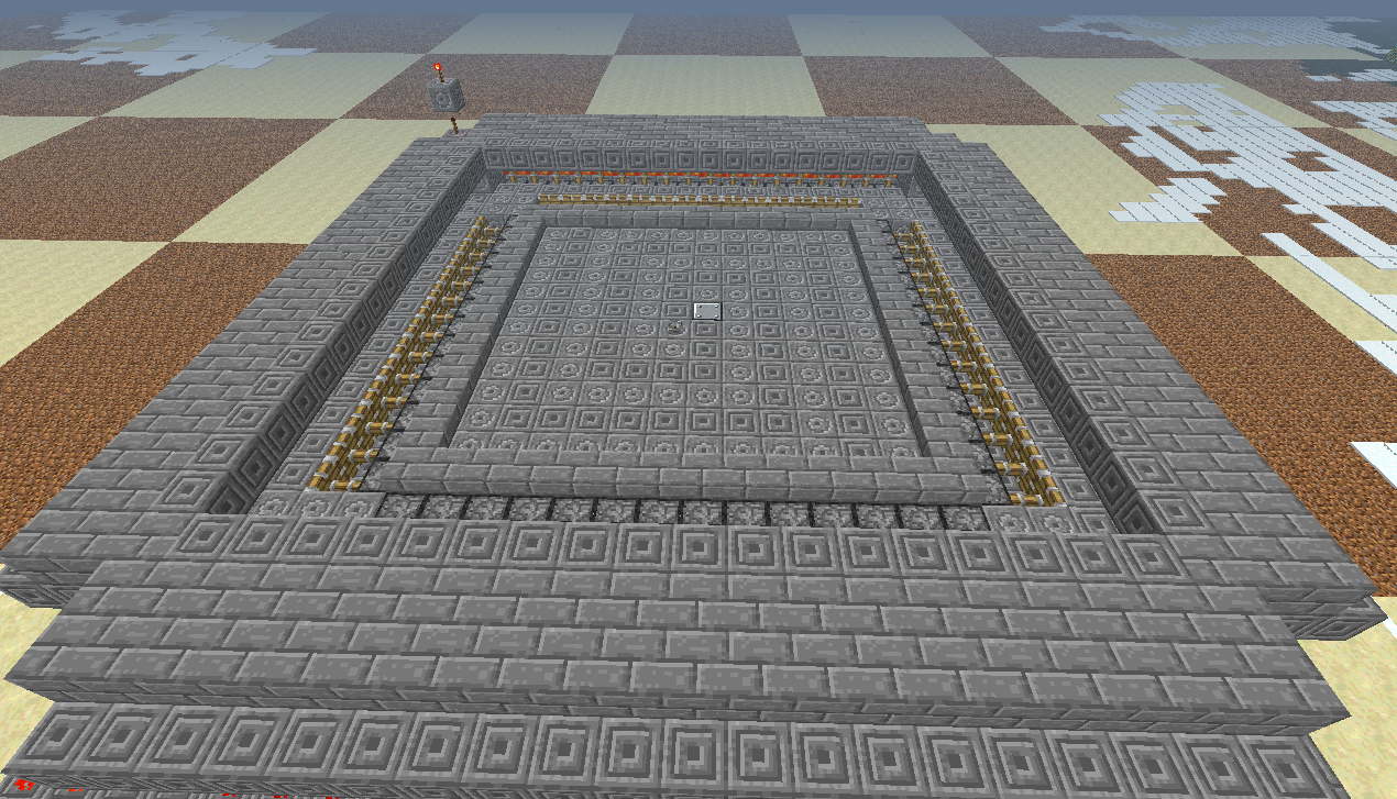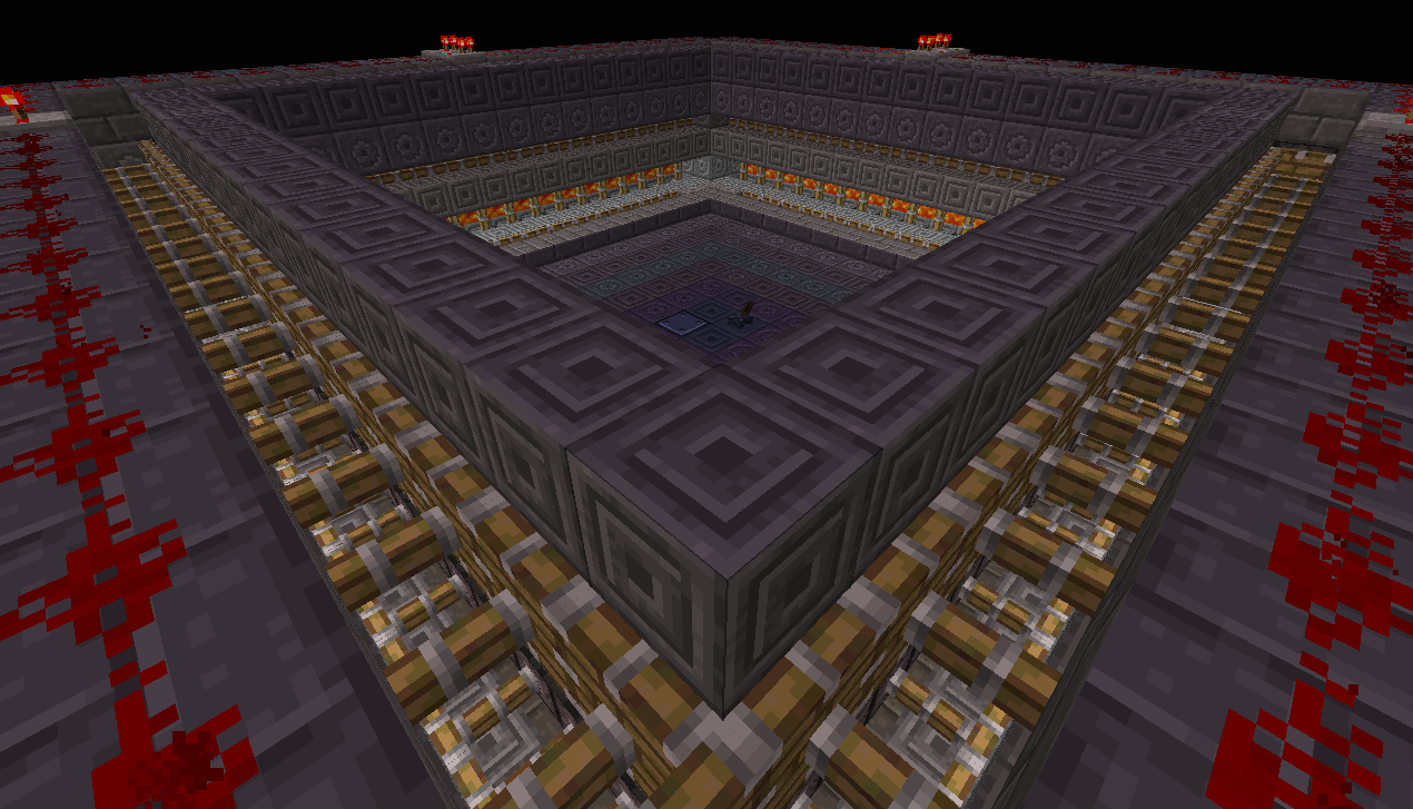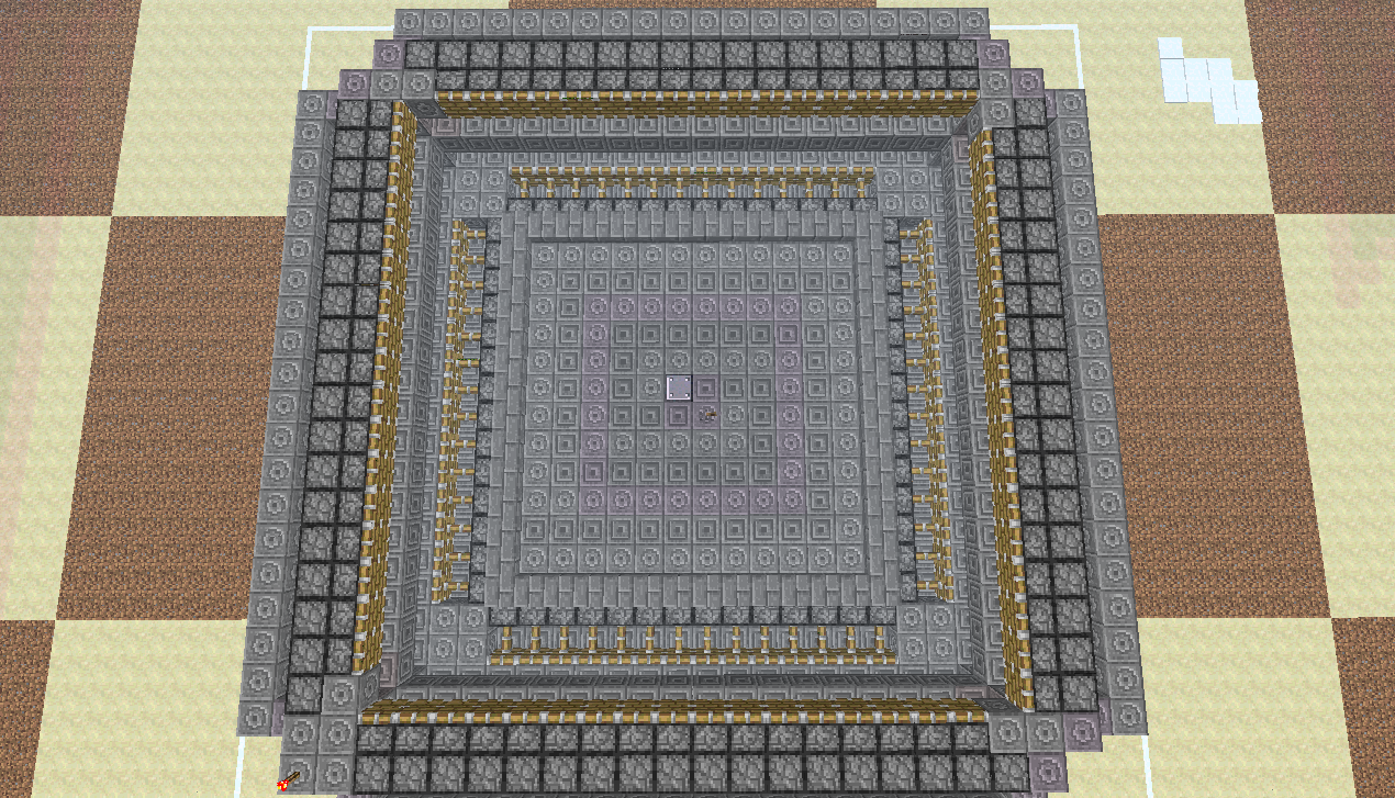 В итоге, начав со схемы размерами 30x30, я закончил схемой 26x26, что очень даже не плохо, т.к. я смог "влезть" в размеры стандартной фабрики CORPORATION-Z. Высота данной фабрики составляет 10 блоков(с учетом пола и потолка), каждый последующий этаж на 1 блок меньше в высоте(совмещаем потолок 2-го этажа с полом 1-го). В фабрике обсидиана от корпорации высота одного этажа - 6-7 блоков, для 2-ух этажей 12-13. Опять же выигрыш в высоте есть, приняв за факт, что на представленной мною фабрике можно ставить и 2 андроида, а при правильной расстановке - 4.