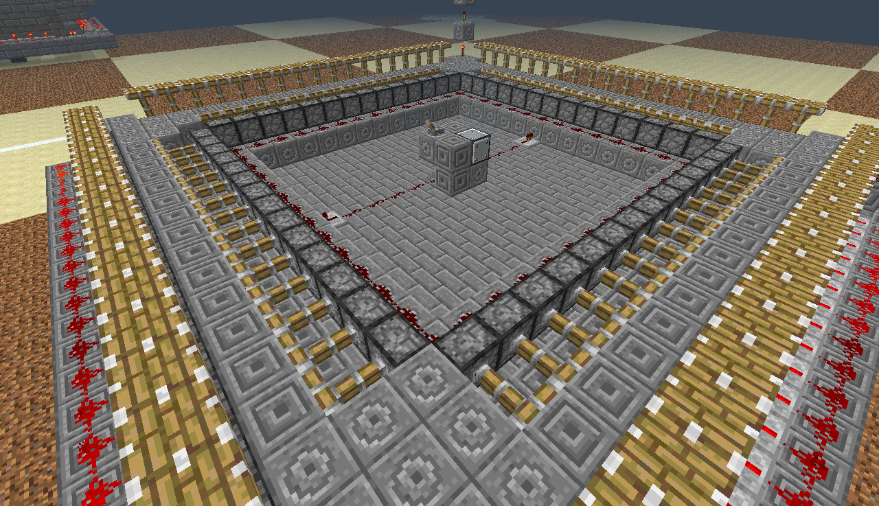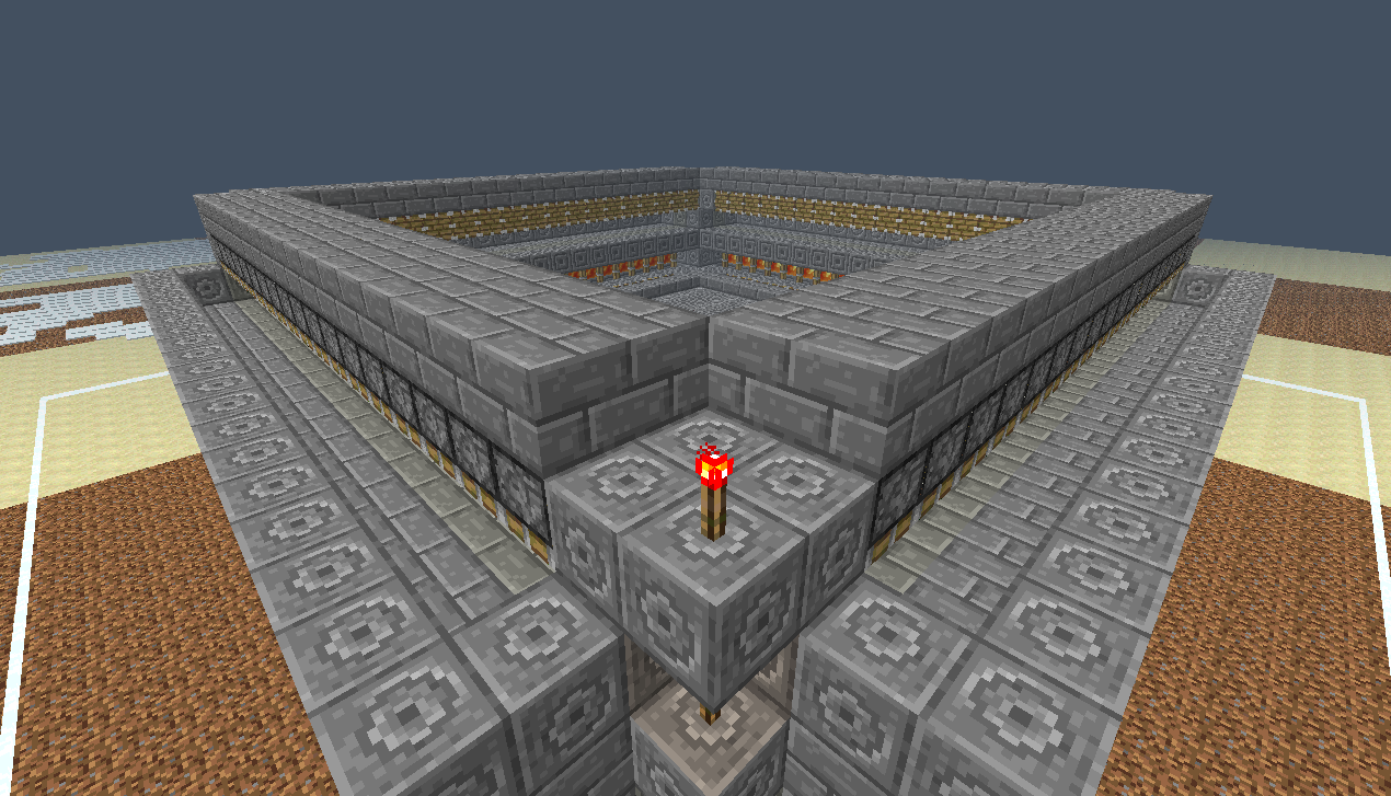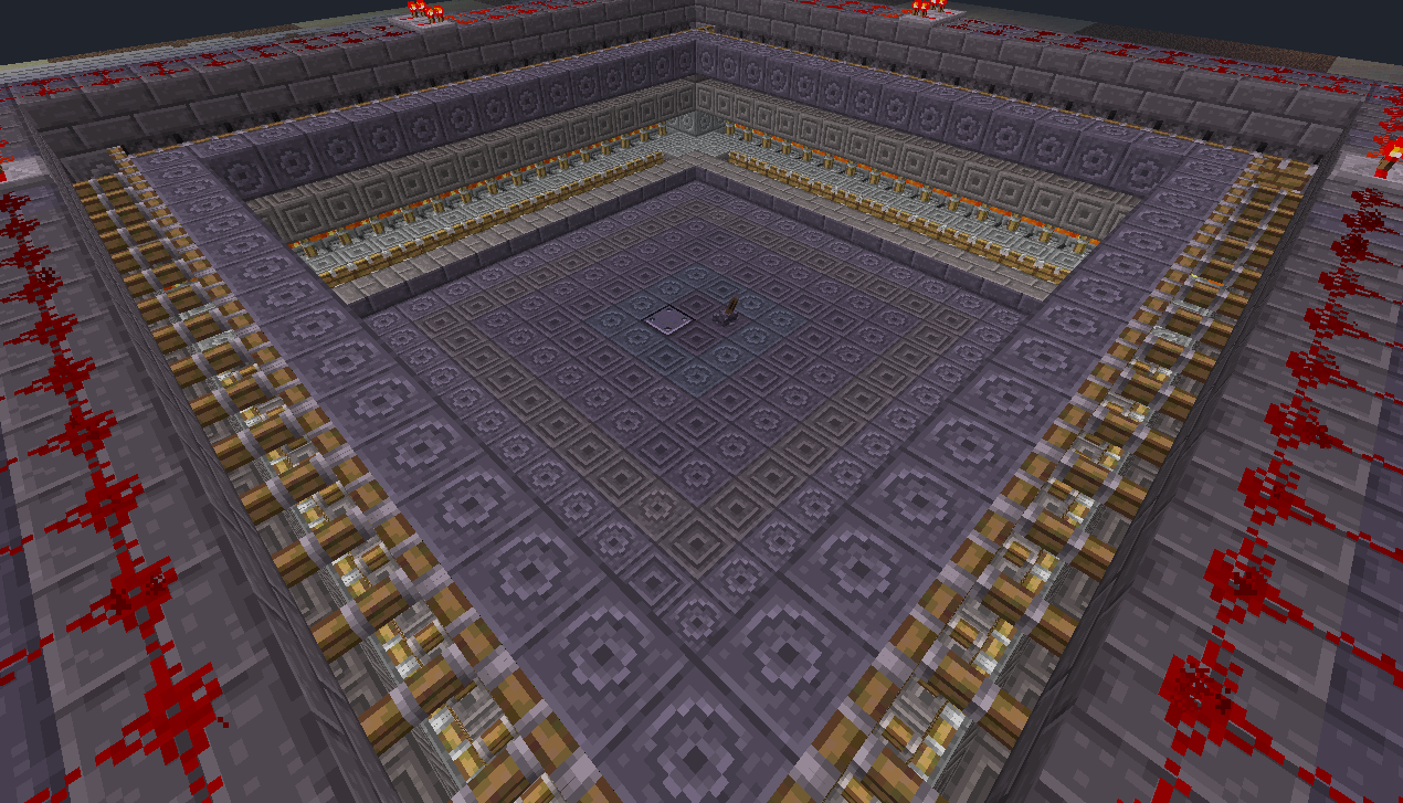 В итоге, начав со схемы размерами 30x30, я закончил схемой 26x26, что очень даже не плохо, т.к. я смог "влезть" в размеры стандартной фабрики CORPORATION-Z. Высота данной фабрики составляет 10 блоков(с учетом пола и потолка), каждый последующий этаж на 1 блок меньше в высоте(совмещаем потолок 2-го этажа с полом 1-го). В фабрике обсидиана от корпорации высота одного этажа - 6-7 блоков, для 2-ух этажей 12-13. Опять же выигрыш в высоте есть, приняв за факт, что на представленной мною фабрике можно ставить и 2 андроида, а при правильной расстановке - 4.