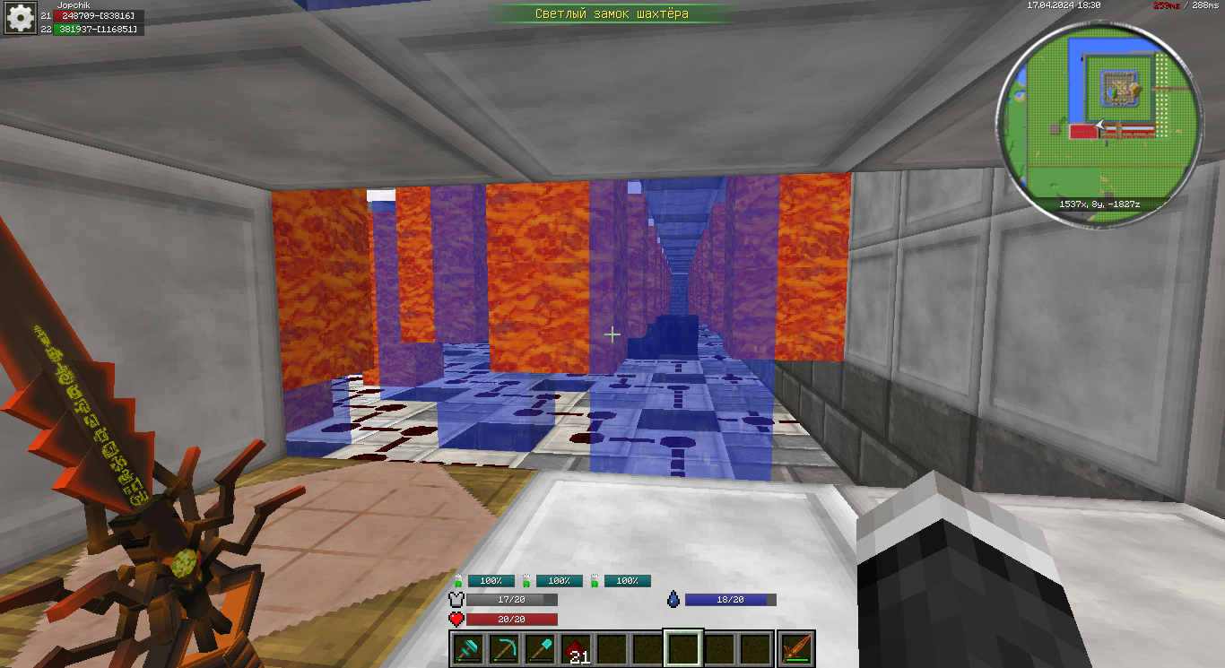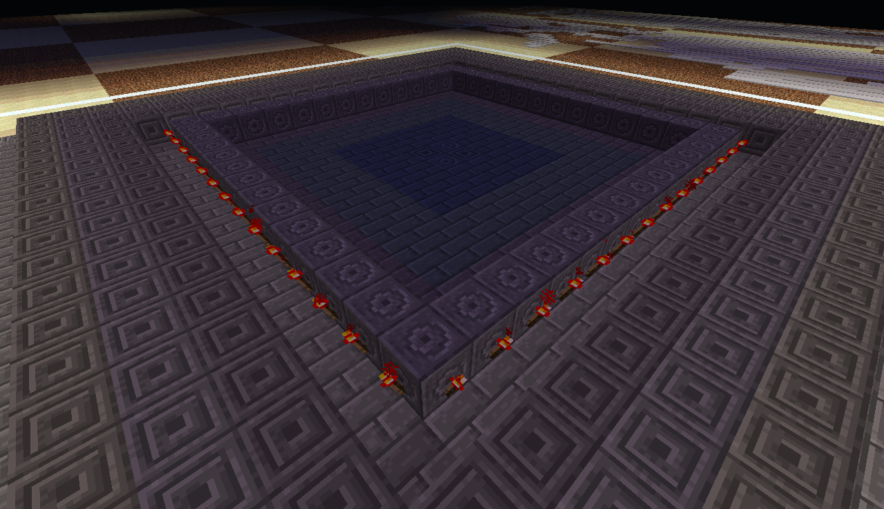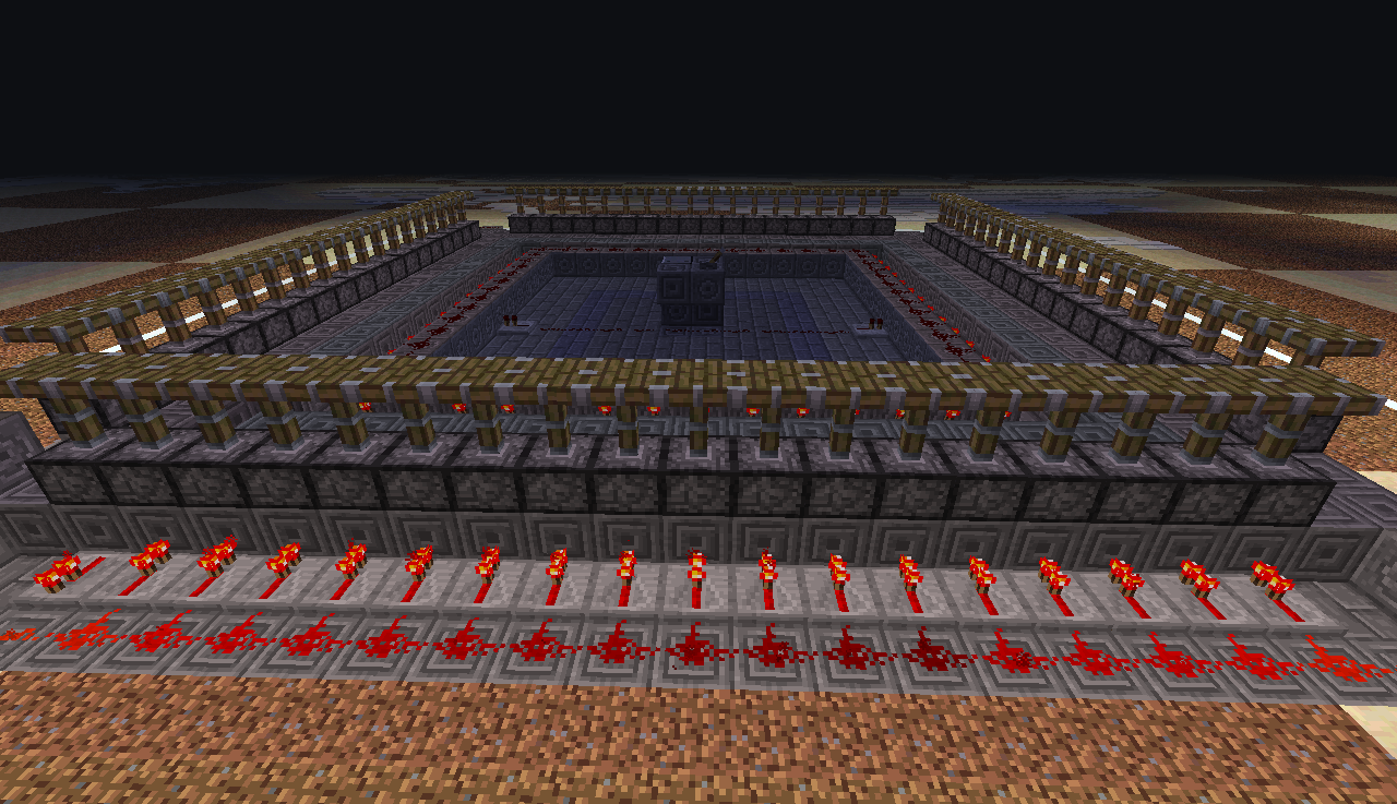 14.Около смотрящих вверх поршней оборудуем "контейнеры" для лавы и наполняем их. Не должно быть течений! Строго все заполнить лавой