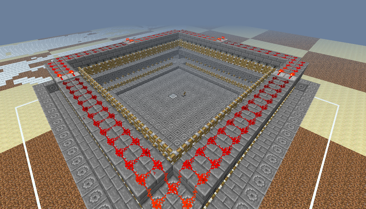 13.Редстоун на внутреннем кольце накрываем полублоками, а дырень в центре блоками. Таким образом должна образоваться ровная площадка(почти ровная) в центре