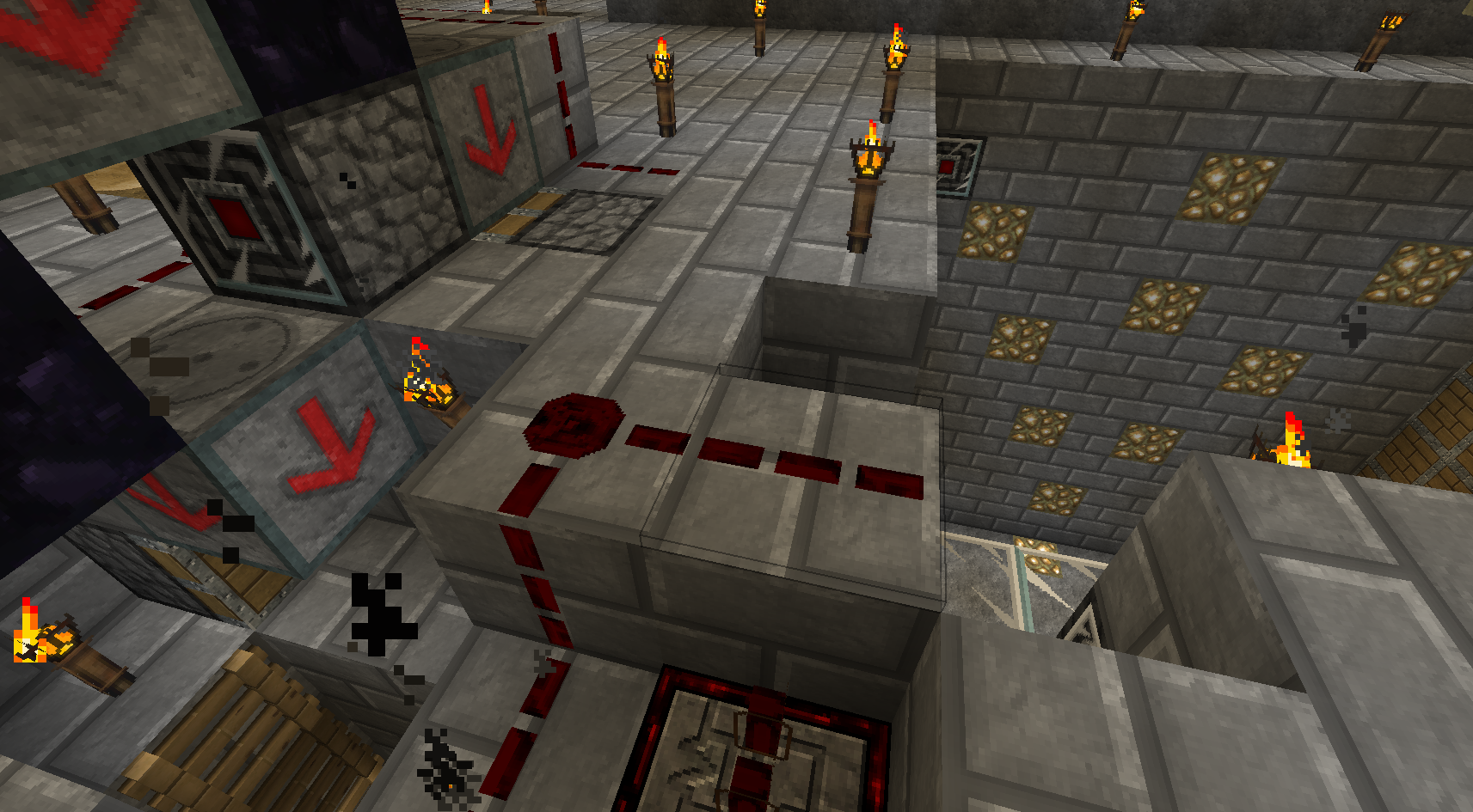 • И самое главное, необходимо установить столб из блоков с противоположной относительно репиторов стороны на всю высоту поршней.