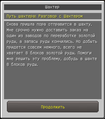 NPC Шахтёр попросит вас разрушить и принести ему 8 блоков золотой руды