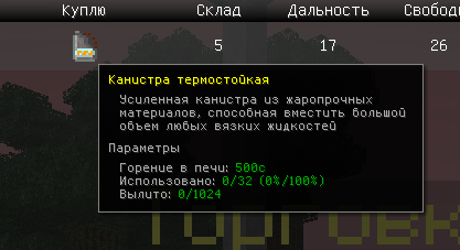 как она кстати работает?а именно мне непонятно как оно будет считать "использовано и вылито" Редактировалось 2 раз(а), последний 2022-02-27 13:52:47 Наполняешь её, выливаешь(тратишь в печке, выливаешь в бочку, крафтишь что-то) - минус 1 прочка. |