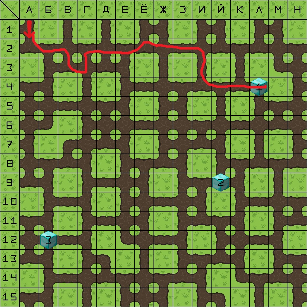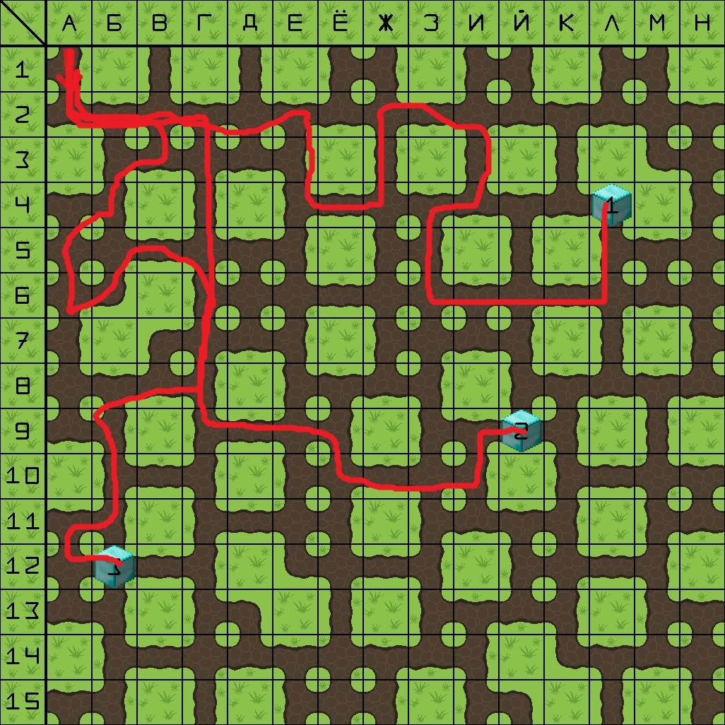 3)Сделать это можно в формате скрина под спойлером проведёнными линиями c ярким цветом в простом paint или в письменном формате с названием клеток "a1 a2 б2" и так до самой клетки с аб. Вариант ответа выкладывать в этой теме.