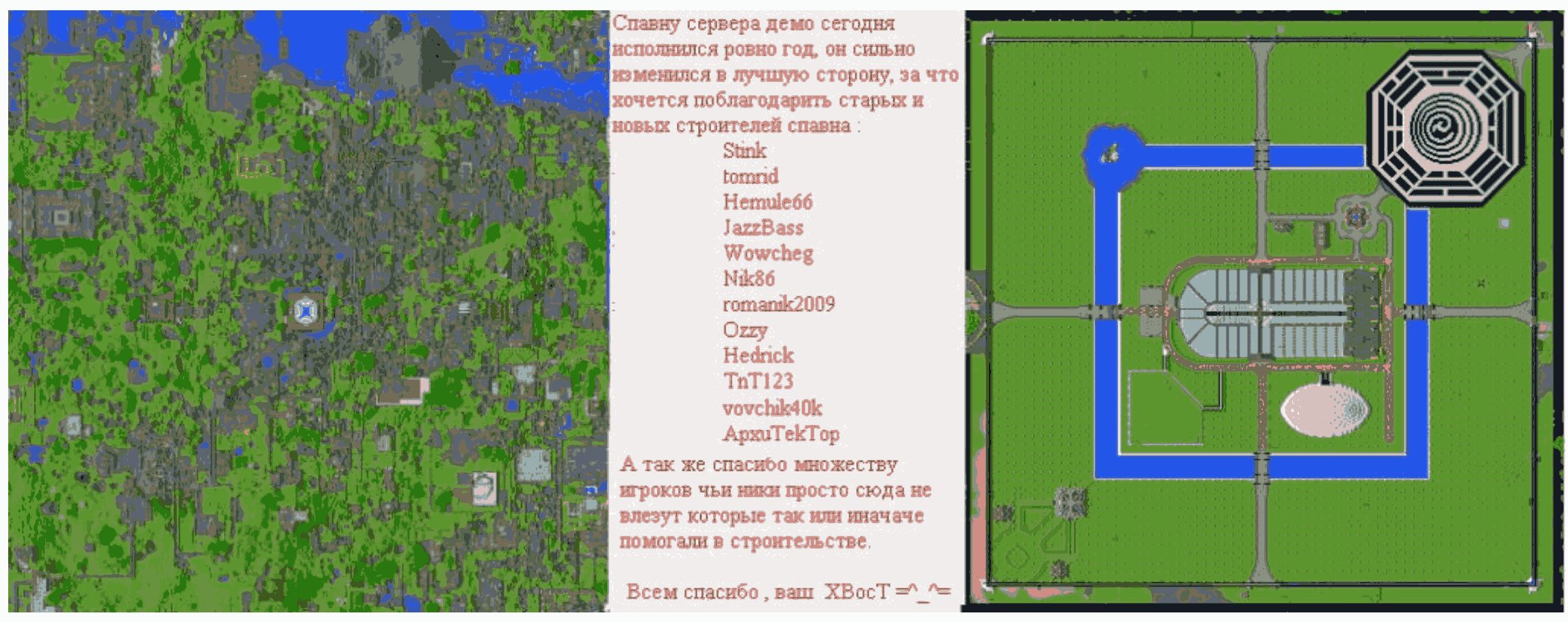 не знал как назвать эту тему, я играю только пол года. листал картинки на форуме, и случайно наткнулся на это. просто посмотрите, как был разбит спавн, и как его красиво сделали. даже ники игроков написали, кто помогал. а почему спавн был разбит? разве его можно как-то сломать?
