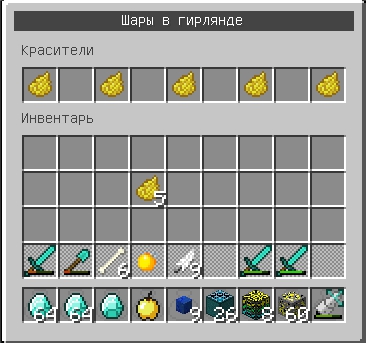 Чтобы установить цвет шариков, нужно нажать ПКМ и в слоты вставить краситель нужного цвета.