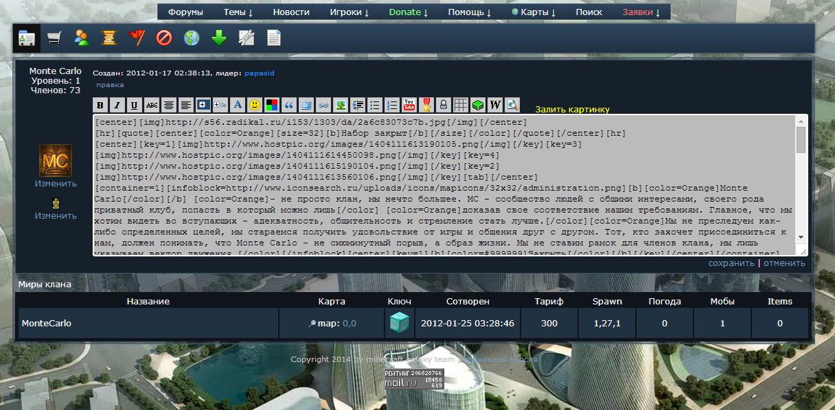 Предлагаю добавить кнопку, которая позволяла бы лидеру посмотреть исходный код измененной страницы, чтобы в случае чего оперативно вернуть главной странице клана прежний вид. Было бы очень удобно, а то сейчас слабо понятно, для чего служит эта функция.