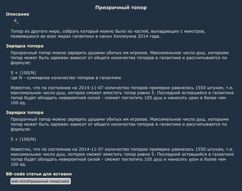 В статье http://forum.minecraft-galaxy.ru/wiki/633 имеется двойное описание