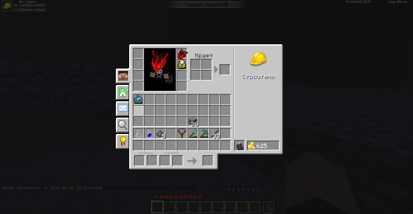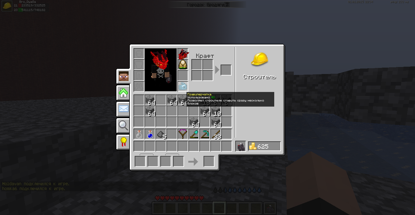 Перчатка не тратится при постройке блоков. То есть можно строить одной перчаткой бесконечно. Индикатор заряда перчатки не расходуется. Но если перезайти в игру или вытащить перчатку из слота, она сразу разряжается и прочность становится равна 1.
