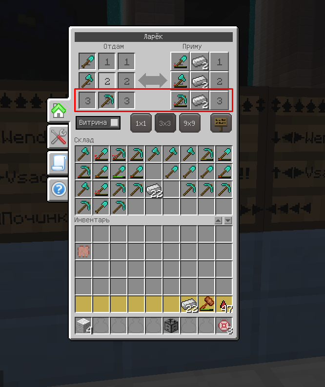 В ларьке при режиме 3х3, лоты в нижних ячейках смещены в сторону (Со стороны покупателя):