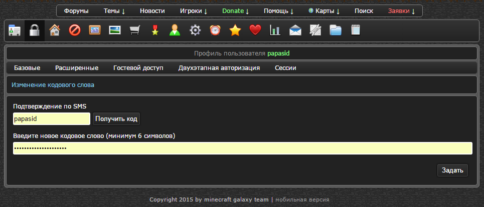 Прошу убрать никнейм с поля и добавить описание, а еще лучше после нажатия "Получить код" открывать новую страницу с полем для введения нового кодового слова и непосредственно кода.