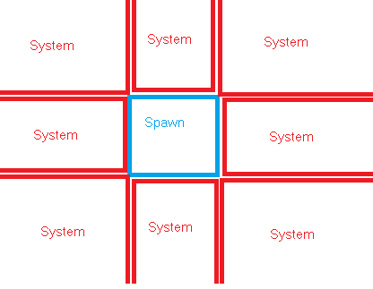 На скрине указана примерная схема спавна: Крыша, плазма, вместо стогов сена - нпц(Яна, Портал, кланмастер) портал Ада. На спавне должно быть только самое необходимое. В том числе, верстак, наковальня, блок воды в земле для амфибий.