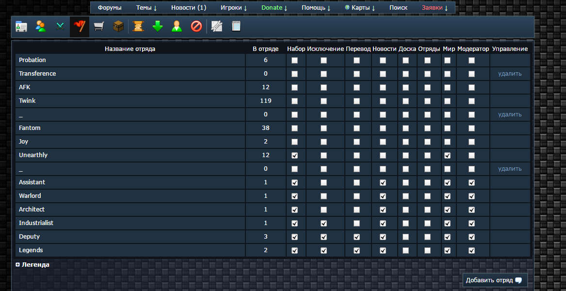 На форуме этой галочки, в настройках отрядов нет. Нужно добавить.
