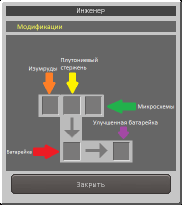 NPC Инженер: Для того чтобы оставался баланс в PVP, можно добавить модификации и у Инженера. Инженер будет модифицировать батарейки.