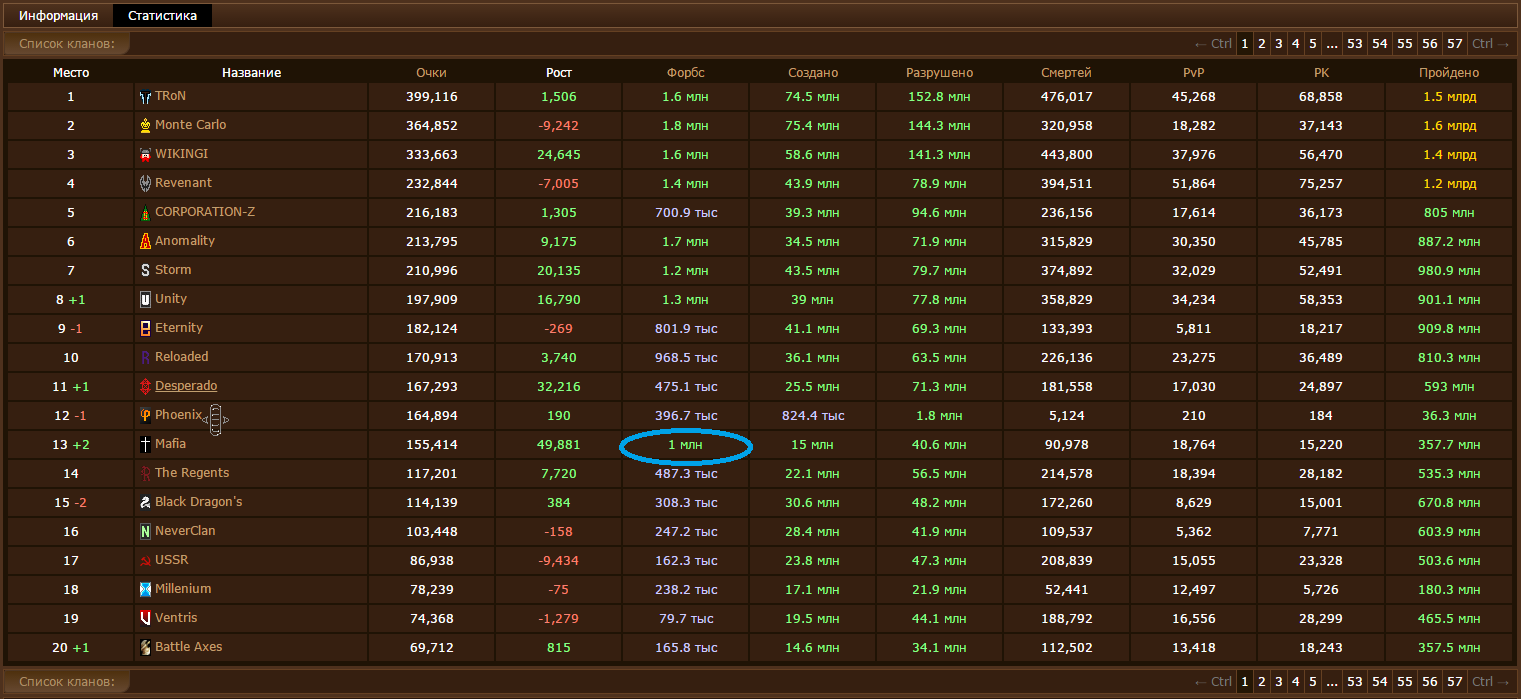 Если игрок является и лидером и просто членом клана, то форбс считается дважды. Пример -