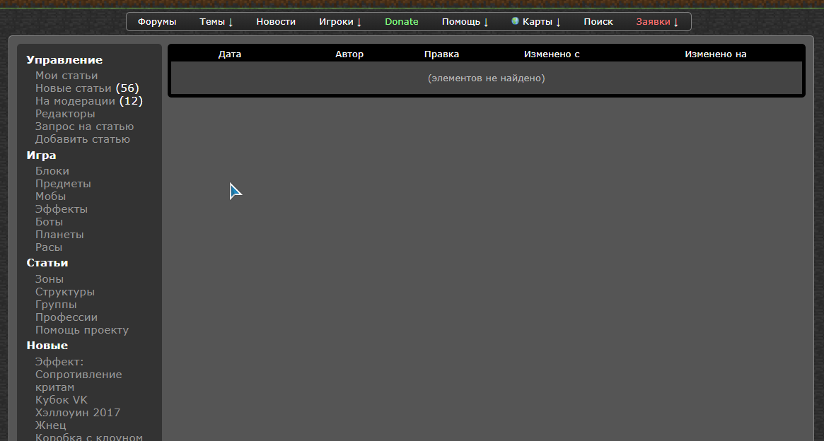 Пример Сравнение планет добавлена правка в таблицу(информация по планете Pirate station). Также кол-во правок не изменяется во вкладке Редакторы |