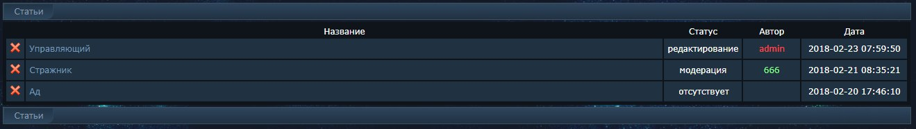 статус - текущий статус (публикация, редактирование, модерация, отсутствует)