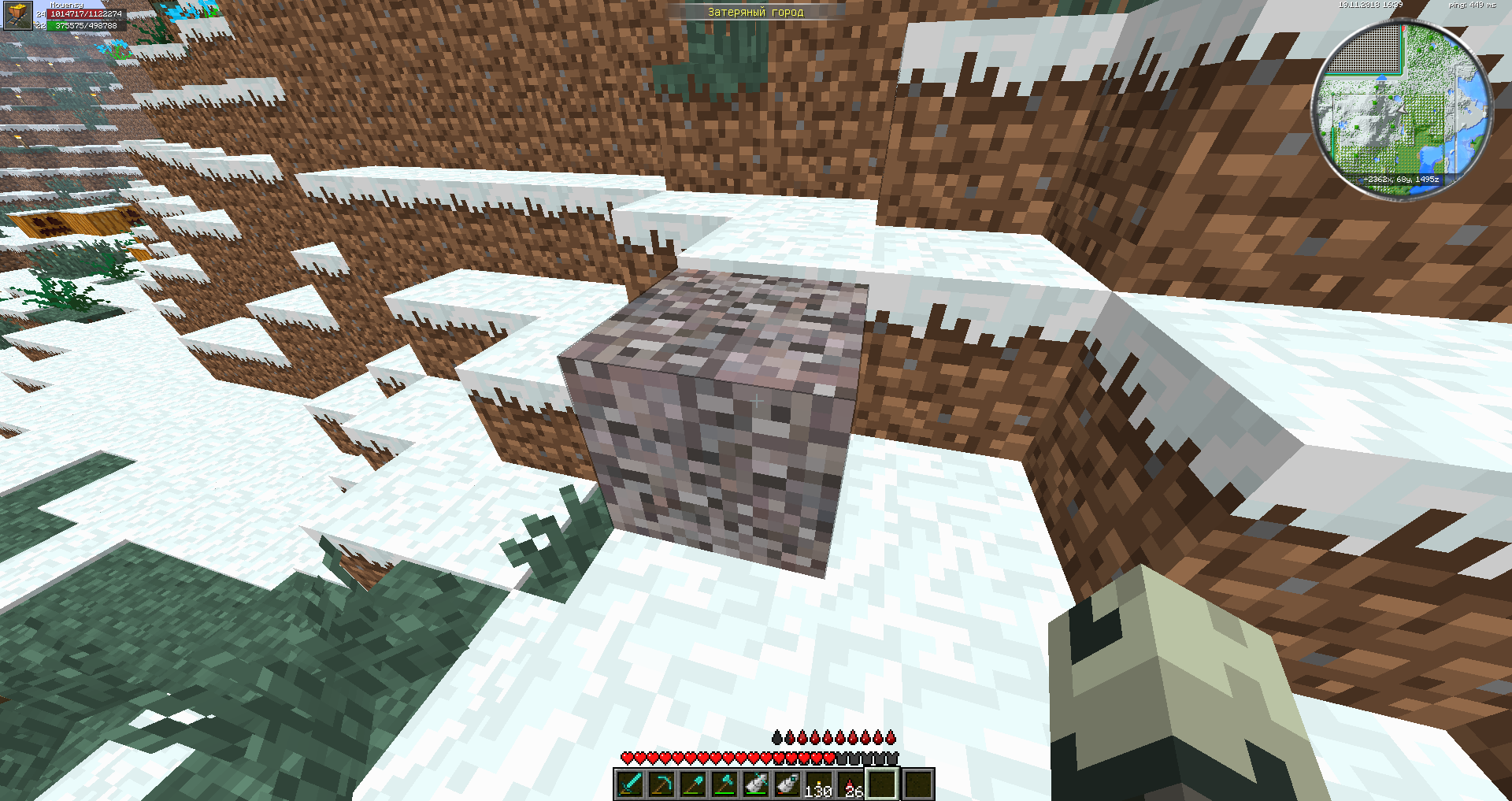 *Можно поставить блок на поверхность, даже если на ней снежный налет, если ставить наводя курсор на стенку соседнего блока.