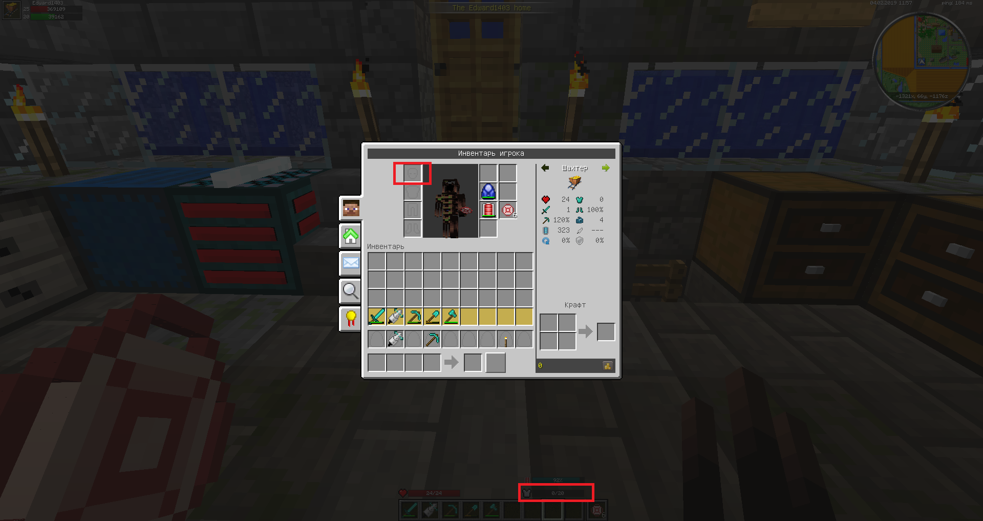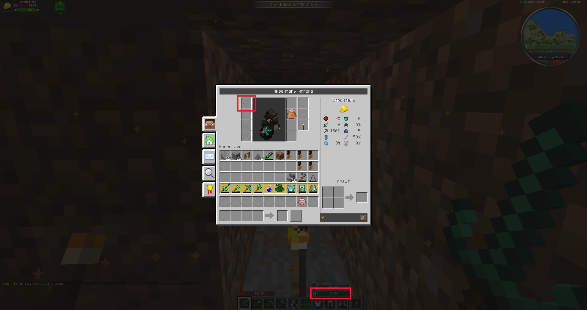 Если у игрока был шлем на 1 удар(зачарованный) то он исчез или стал с отрицательным значением.