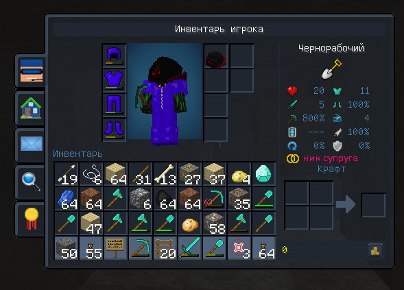 Поле учтения всех требований в квесте на заключение брака играет музыка и квест завершается. У новобрачных теперь будет отображение в профиле ника супруга. В мировой чат будет отправлено сообщение что НИК и НИК теперь новобрачные.