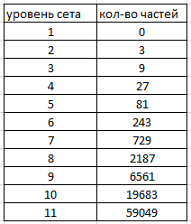 Для нагрудника 4го уровня мне необходимо 3 нагрудника 3го лвл, для них 9ть 2го, для них 27мь 1х.