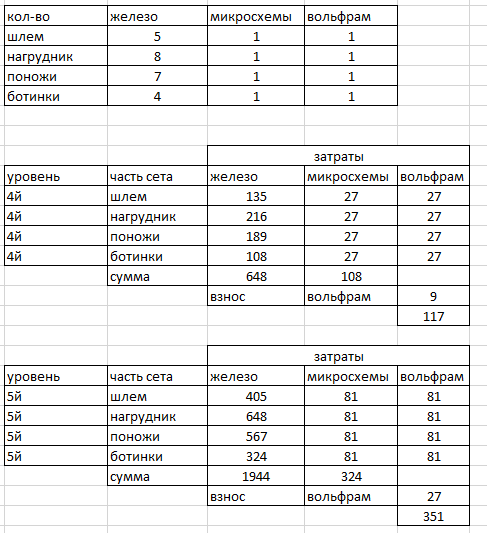 У тебя получилось по этой схеме сделать 5ку, тебя что-то остановит сделать 6? Будет ли у тебя спрос ещё на ресурсы, или достигнув 5ки тебя остановит в интересе получить больше? А сколько игроков захотят тоже, получить больше? Те кто продавал и продает сет по большей части пойдут улучшать себе сеты и ещё малая часть продавать. Адамантий с рынка уйдет быстро, вольфрам возрастёт и частично так же пропадет с рынка. Большое количество шахтеров которые давно не копали на пирате, вновь зайдут копать. Олово будет повышено в цене. Следовательно ресурсы рынка по типу необходимых на создание сетов, как и сами обычные сеты уйдут с рынка и возрастут ещё более в цене. На бирже уже нету золота, алмазов не так много, как быстро уйдут железные блоки? Я пытаюсь донести мысль, что будет как когда добавили аксессуары в коллекции. Кто был в сети в момент обновления, часть скупали все маски с рынка и поднимали цену, либо убирали то что у них есть. Цена подскочила на все маски, да вот спустя какое время цена на них не упала. Да и у всех ли хватит ресурсов, что бы одеть по моему уже примеру несколько аккаунтов, хотя бы боевых. 2 инженера, огр и амфибию, на необходимых серверах, Нано, Кланс, Тим. Мне нужно 6 сетов, а сколько аккаунтов Я хочу одеть, за сколько дней, и слитых АБ, Я смогу нормально одеть все аккаунты? |