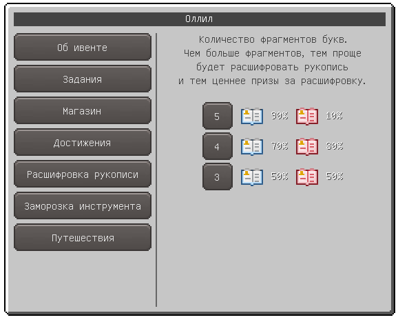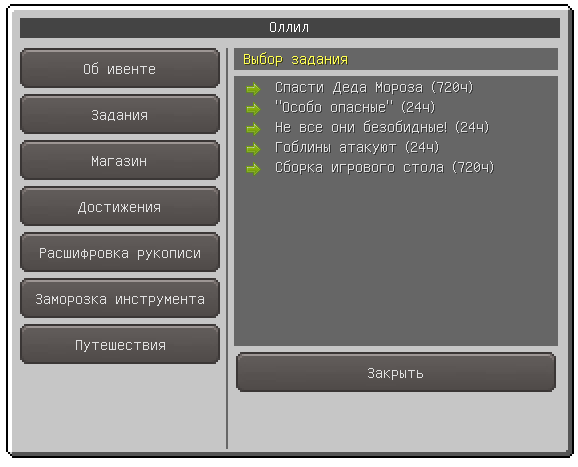 У ОллиЛ`а можно брать сюжетные, а так же ежедневные задания, в награду за которые игрок будет получать некоторое количество новогодней валюты.