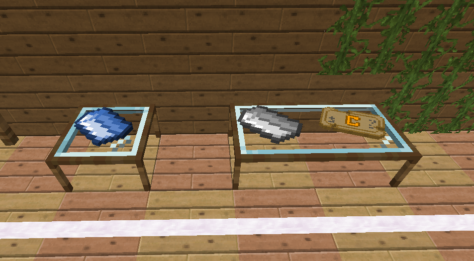 Журнальный столик может быть установлен как в одиночном виде, так и в сдвоенном: для этого достаточно поставить один стол и вторым кликнуть по любой из его сторон. На столик может быть быть вставлен любой предмет, который будет отображен лежащим на столе, однако не все предметы, которые можно вставить, будут отображаться: если предмет не поддерживается, то игрок увидит вместо него костную муку. Для возврата или замены лежащего предмета достаточно кликнуть по нему правой кнопкой мыши.