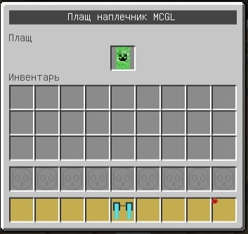 Чтобы отобразить плащ, его нужно вставить в наплечник. Для этого необходимо нажать клавишу "F", после чего откроется диалоговое окно с одной ячейкой для размещения плаща и инвентарём игрока.