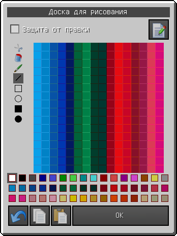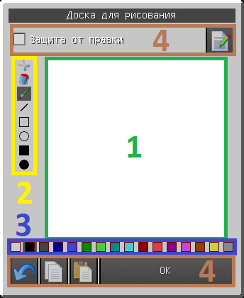Доска рисования нужна для рисования пользовательских картин. Рисование осуществляется с помощью кисти. Является аналогом граффити, но с несколькими отличиями: